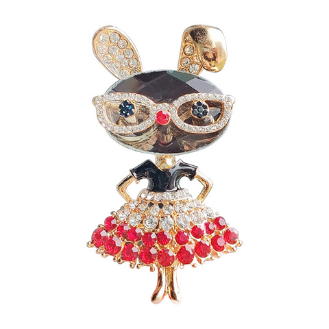 Broche de conejo para mujer con diamantes de imitación, broches de animales de conejito de cristal chapados en oro a la moda, alfileres de solapa para mujeres y niñas