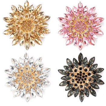 Broche de oro con diamantes de imitación coloridos, broche de girasol de cristal para mujer, decoración de sombrero de vestir