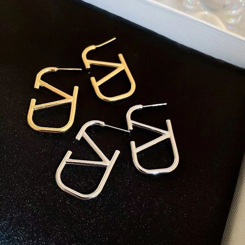 Boucles d'oreilles en or de style simple pour femmes Boucles d'oreilles de fiançailles de marque de luxe en laiton avec alliage plaqué or en forme de lettre