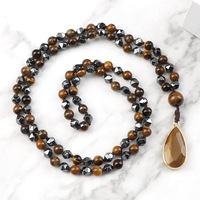 Nouveau pendentif goutte 108 perles collier irrégulier hématite oeil de tigre pierre Protection de la santé hommes longs colliers femmes