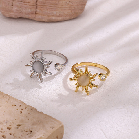 Nuovo anello girevole girasole caldo-vendita oro placcato ottone esagramma aperto anello regolabile con occhio di gatto pietra intarsiato per le donne