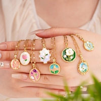 여성 꽃 우아한 바로크 에나멜 페인팅 럭셔리 골드 도금 천연석 목걸이 보석에 대한 스테인레스 스틸 매력