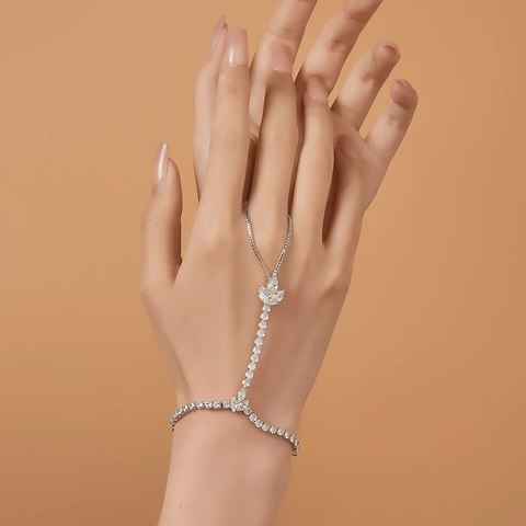 새로운 여성 손 팔찌 노예 체인 링크 핑거 링 하트 비즈 체인 연결 손 하네스 팔찌 여성용