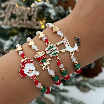 ชุดเครื่องประดับสร้อยข้อมือลูกปัดแบบยืดหยุ่นสำหรับผู้หญิงสร้อยข้อมือสังกะสีอัลลอยชุบทองแบบเฉพาะกลุ่มสีคริสมาสต์
