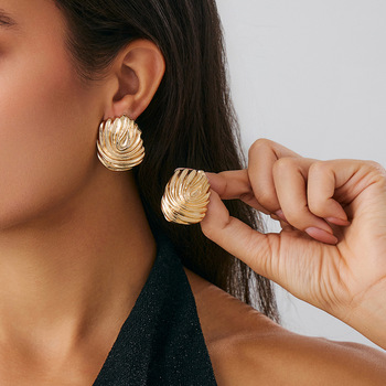 ต่างหูจี้รูปทรงเรขาคณิตแบบไม่สมมาตรทันสมัยหรูหราเครื่องประดับแบบไม่สมมาตรดีไซน์โลหะอุปกรณ์เสริมสำหรับอัดพลีท