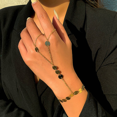 Yeni varış egzotik tasarım geometrik payetli Metal parmak yüzük bilezik kadınlar için el zinciri