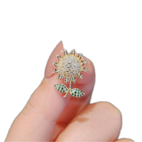 Tatlı sevimli küçük boy Pin Schoolbag çanta aksesuarları çiçek broş Pin kristal ayçiçeği broş kadın kızlar için